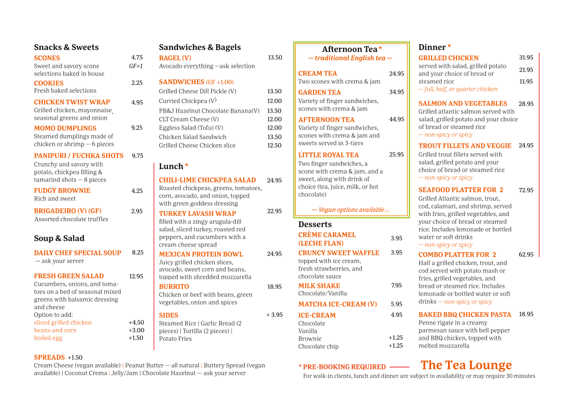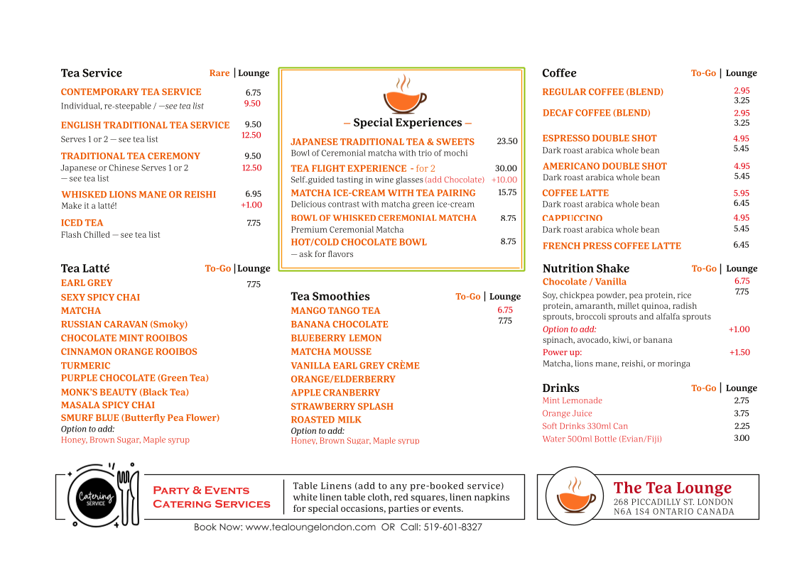 The Tea Lounge Menu